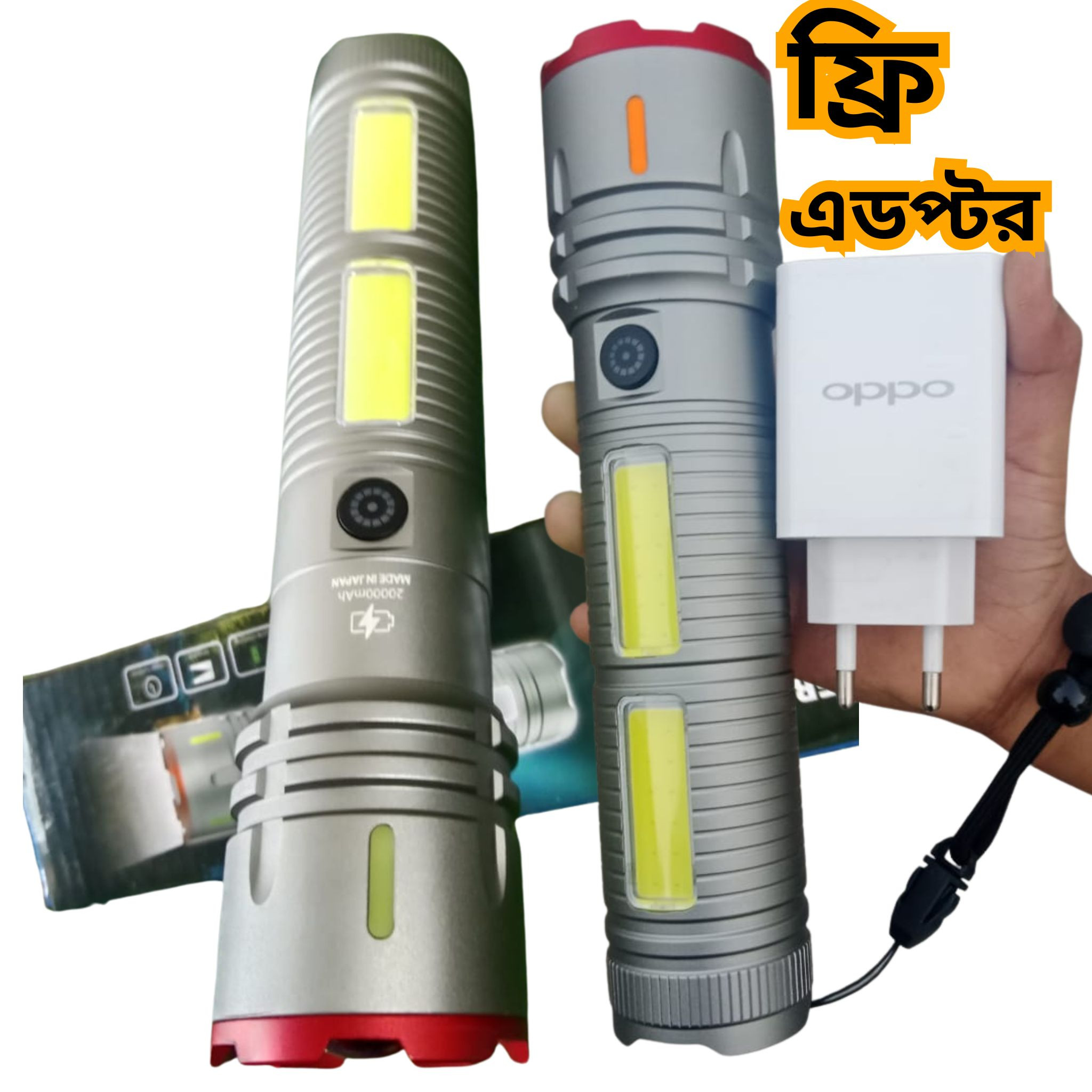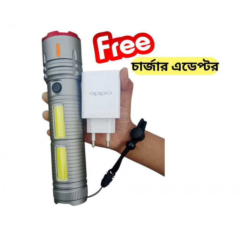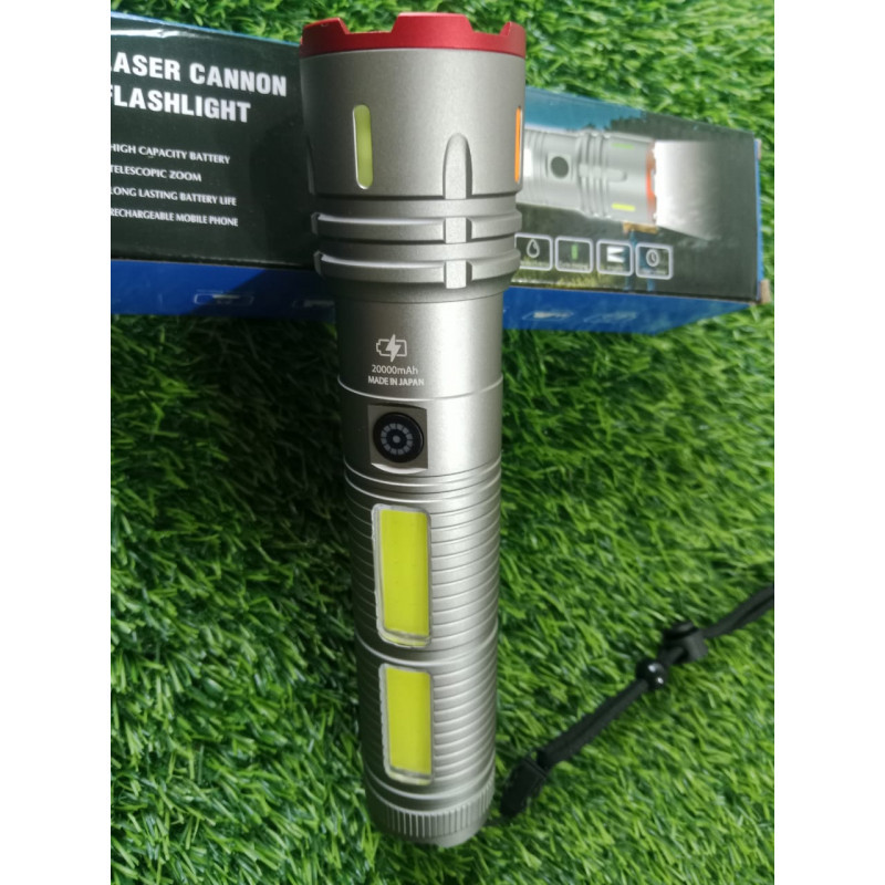 সুপার সিলভার টর্চ লাইট উইথ পাওয়ার ব্যাংক, ২০০০০mAH ব্যাটারি সাথে চার্জিং এডেপ্টর ফ্রি
