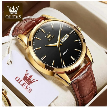 Olevs Watch Model 6898 Belt Brown Dial Black Colour Watch For Men Price in bangladesh